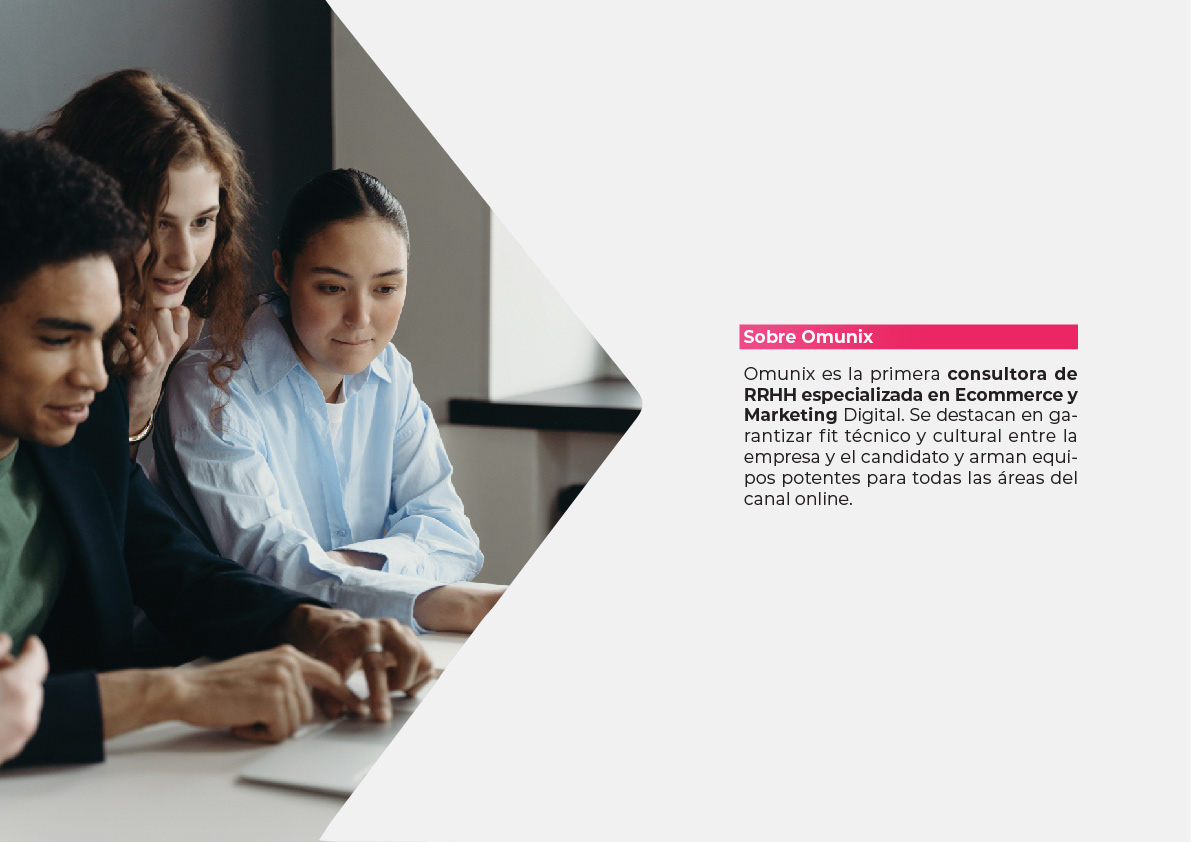 Omunix es la primera consultora de RRHH especializada en Ecommerce y Marketing Digital. Se destacan en garantizar fit técnico y cultural entre la empresa y el candidato y arman equipos potentes para todas las áreas del canal online.